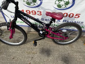 Spec: Twist grip gear changers, full suspension, chain ring guard.