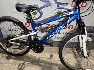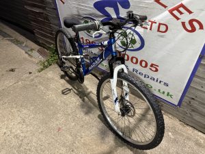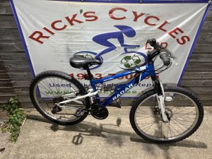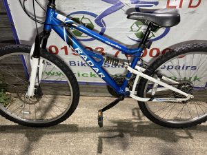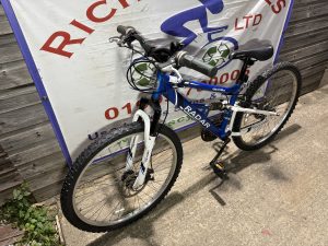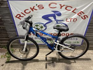 Spec: Twist grip gear changer, full suspension, front brake disc, chain ring guard, comfy qr saddle.