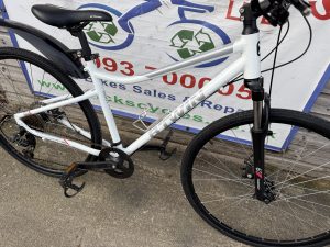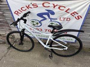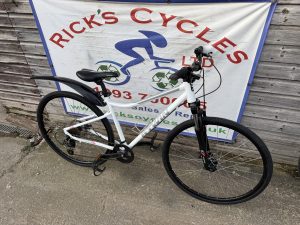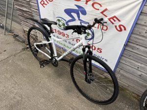 Great Spec: Rapid fire gear changer, disc brakes, front suspension, qr wheels, qr seat post, mudguard, comfy saddle, drinks holder.