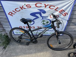 Serviced including new freewheel gears, new chain, new rear brake cable, new gear cables, brake blocks front/rear, new drinks holder & replacement used tyres fitted.
