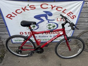 Spec: Trigger gear changer, Schwalbe K guard tyres, comfy saddle, drink holder.