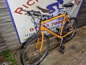 Good Condition with a few signs of use!. The point with this bike is it’s not really going to get stollen! But it’s light & works well!!