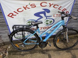 Very good Spec: Shimano Trigger gear changer combo Hydraulic disc brakes, lockout front suspension, qr wheels, qr seat post, full SKS mudguard, chain ring guard, rear alloy rack, comfy saddle, stand, drinks holder. Nice smooth gear changing.