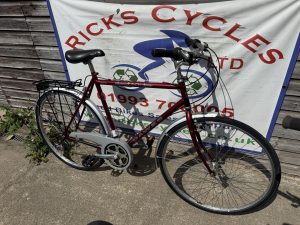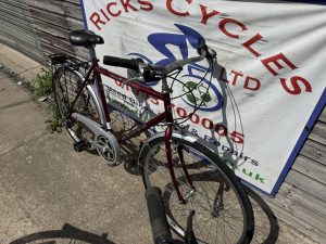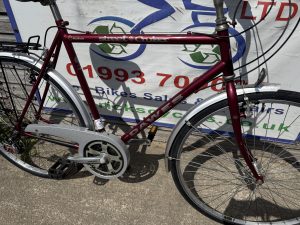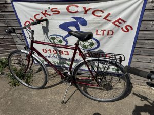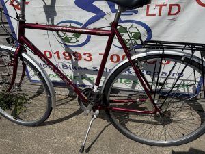 Spec: Twist grip gear changers, full chain guard, full mudguard, rear rack, stand, very comfy saddle, stand.
