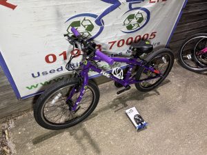 Serviced including new cassette, new chain, new sealed bottom bracket, new genuine Frog chain ring guards, new gear cable, new brake cables, new purple lock on grips, new rear brake blocks, new peddles & new OP drinks holder fitted.