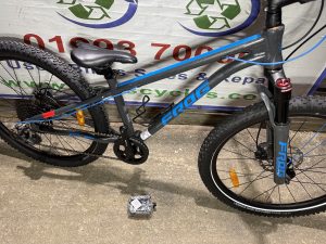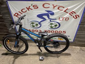 Spec: Hydraulic disc brakes, Trigger gear changer, lockout Air front suspension, upgraded handle bars, qr wheels, qr seat post, chain ring guard, drinks holder.