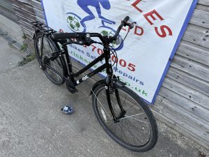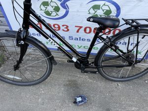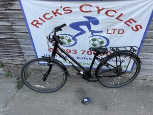 Spec: Trigger gear changer, qr wheels, qr seat post, floating chain guard, full mudguard, rear rack, stand.