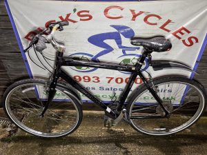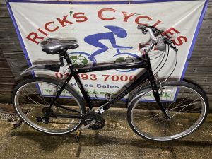 Serviced including new front wheel, new Schwalbe Marathon K guard L5 tyres, new tyres, new sealed bottom bracket, new sealed head set, new freewheel gears, new chain, new Shimano Altus rear mech/gear-brake levers, new brake blocks front/rear, new brake cables & new gear cables, new mudguards, new OP palm lock-on grips & new drinks holder fitted.