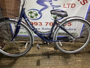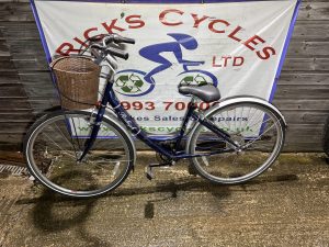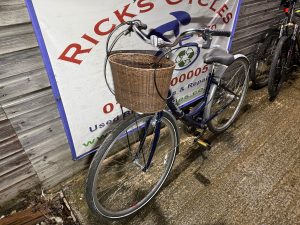 Spec: Twist grip gear changer, Schwalbe Land Cruiser Plus K guard tyres, Front basket with supports, full chain guard, full mudguards, adjustable stem, comfy saddle.