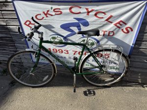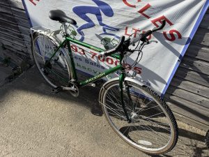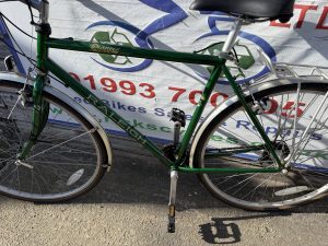 Spec: Twist grip gear changer, very comfy saddle, mudguards, rear rack.
