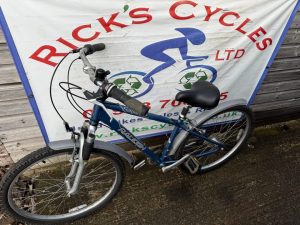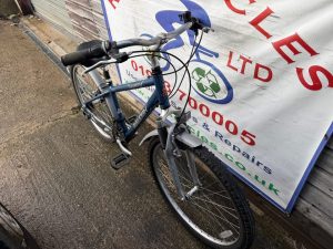 Spec: Twist grip gear changers, front suspension, suspension seat post for that extra comfort, chain ring guard, mudguards, very comfy saddle.