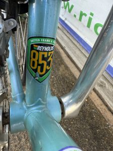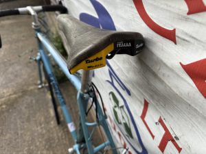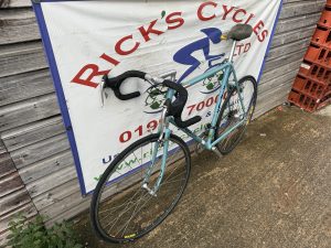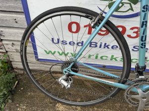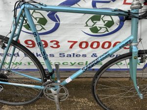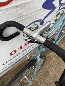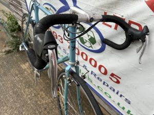 Spec: Campagnolo group set including hubs, old par that’s not is the front mech, Mavic rims, Vitoria rubino tyres, cineli.