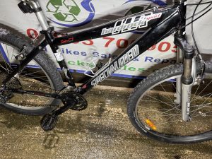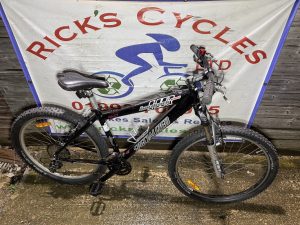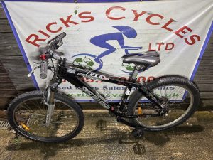 Great Spec: Shimano rapid fire gear changers/Deore rear mech/Deore brake calipers/Servo-wave Action brake levers, RST Gila T4 front suspension, we seat post, qr wheels, Wellgo alloy peddles, Triativ XR stem/bars, drinks holder.