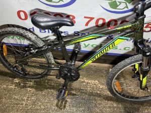 Spec: Front suspension, grip shift gear changer, chain ring guard, stand.