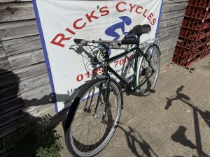 Spec: Shimano Acera Rapid fire group set, full mudguards, rear rack, Continental AT ride Kguard tyres, chain ring guard, qr wheels, very comfy saddle, drinks holder.
